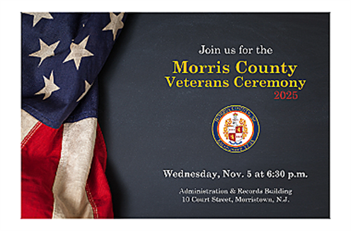 The Morris County Board of County Commissioners invites the public to attend the 2025 Annual Veterans Day Ceremony on Wednesday, Nov. 5, at 6:30 p.m. in the Commissioners’ Public Meeting Room 555 of the Administration and Records Building, 10 Court St., Morristown.